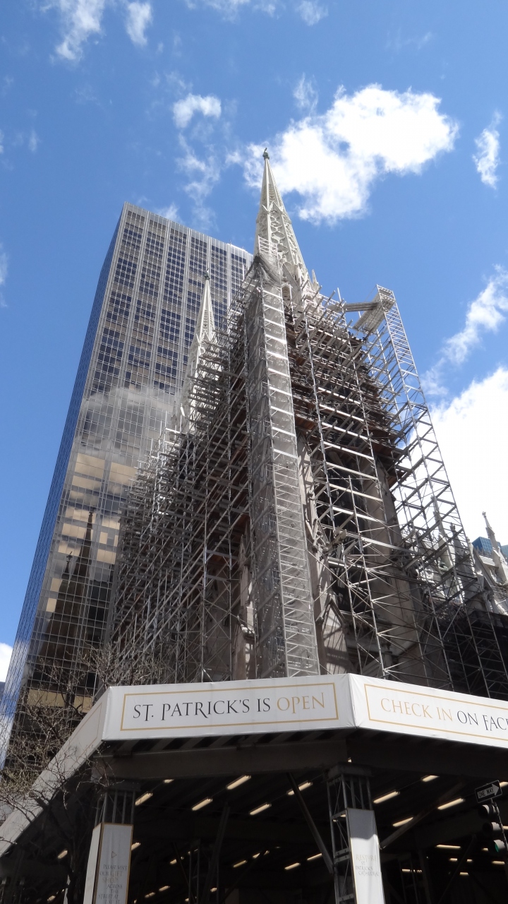 セント・パトリックス大聖堂は、MOMA美術館とロックフェラーセンターの間くらいの位置、五番街とマディソンアヴェニューの間にあります。ケルンの大聖堂をモチーフにしたという、非常に大きな建物ですが、それでもケルンを先に見てしまうと、歴史の面でも大きさの面でも少し見劣りしてしまうかな?あまりに工事の覆いが多すぎてよくわからなかったのが残念でした。