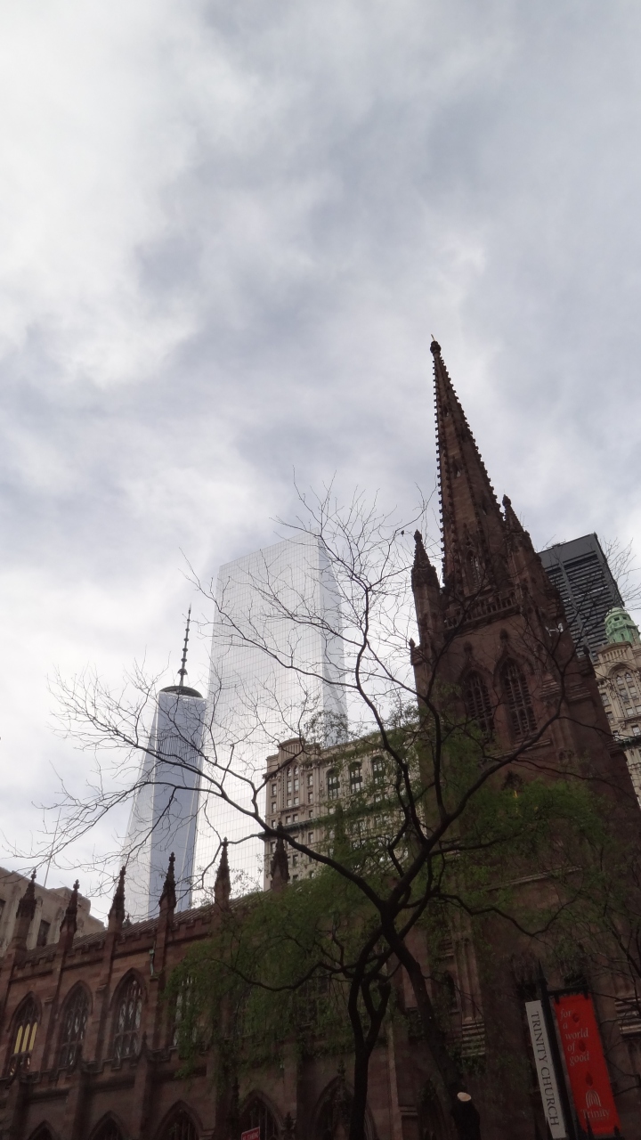 ウォール街はマンハッタンの南、ファイナンシャルデストリクトにあります。ちょうどアメリカに向かう機内で「ウルフ・オブ・ウォール街」という、レオナルド・ディカプリオ主演の映画を見たところだったのでとても感慨深く眺めました。ここがアメリカの金融の中心で、世界の金融の中心ともいえる場所。休日だったにもかかわらず、ぱらぱらとここで働いているらしき人たちも歩いていましたし、ジムやフィットネスのクラブも多いですね。常に作動しているという感じでした。