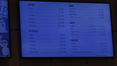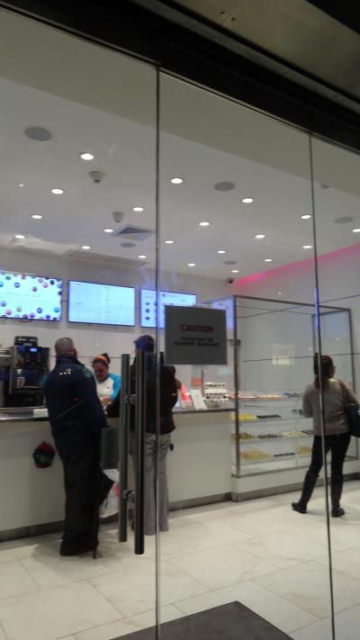 ここのベイクド・バイ・メリッサは、グランドセントラル駅の構内にあります。手のひらサイズのカップケーキのお店です。ケーキはたくさんの種類があって、どれもおいしいので一口で食べれてしまうサイズなのが非常に残念。基本的にひとつが1ドルからありますが、数が増えれば増えるほどお得になる、たとえば12個なら10ドル、25個なら20ドル、などです。ここのお店の特徴として、がらんとしているからか、ケーキの小ささが余計目立ちますね。