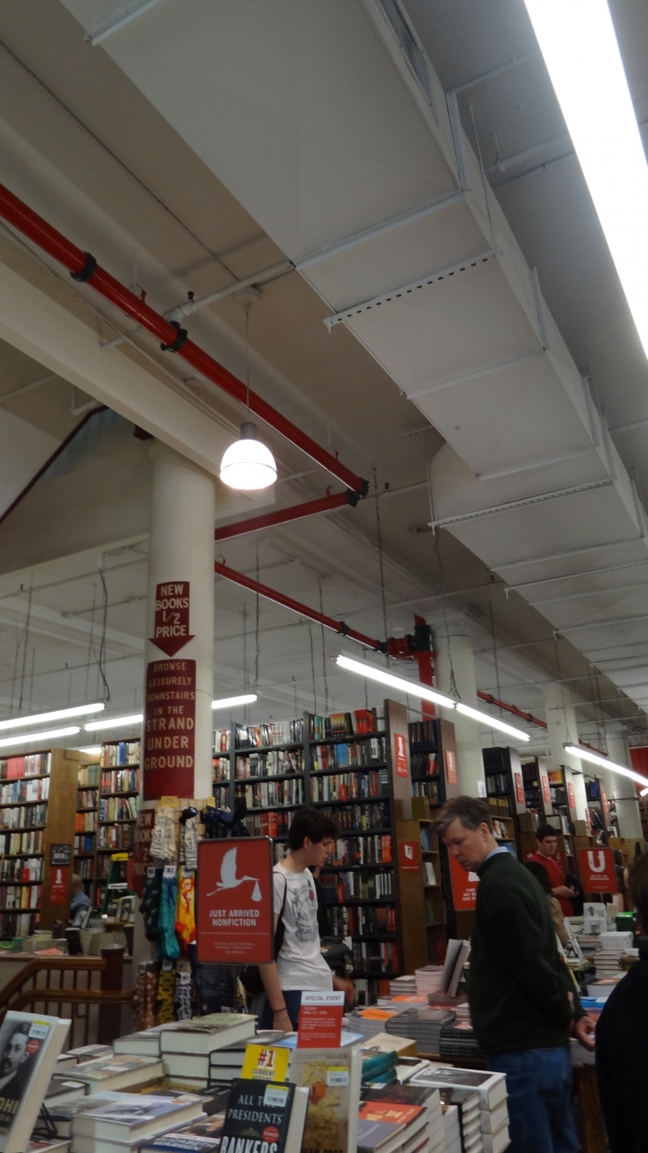 ストランド・ブックストアは、ニューヨークの老舗書店です。一番上の階にレアな古書などがある、映画などに出てきそうなお店です。店内は老朽化のせいか、エレベーターでのフロアの移動などが狭くて暑くてけっこう大変でした。ニューヨークの歴史を見てきた本屋さんですね。特製グッズもいろいろと売っていました。
