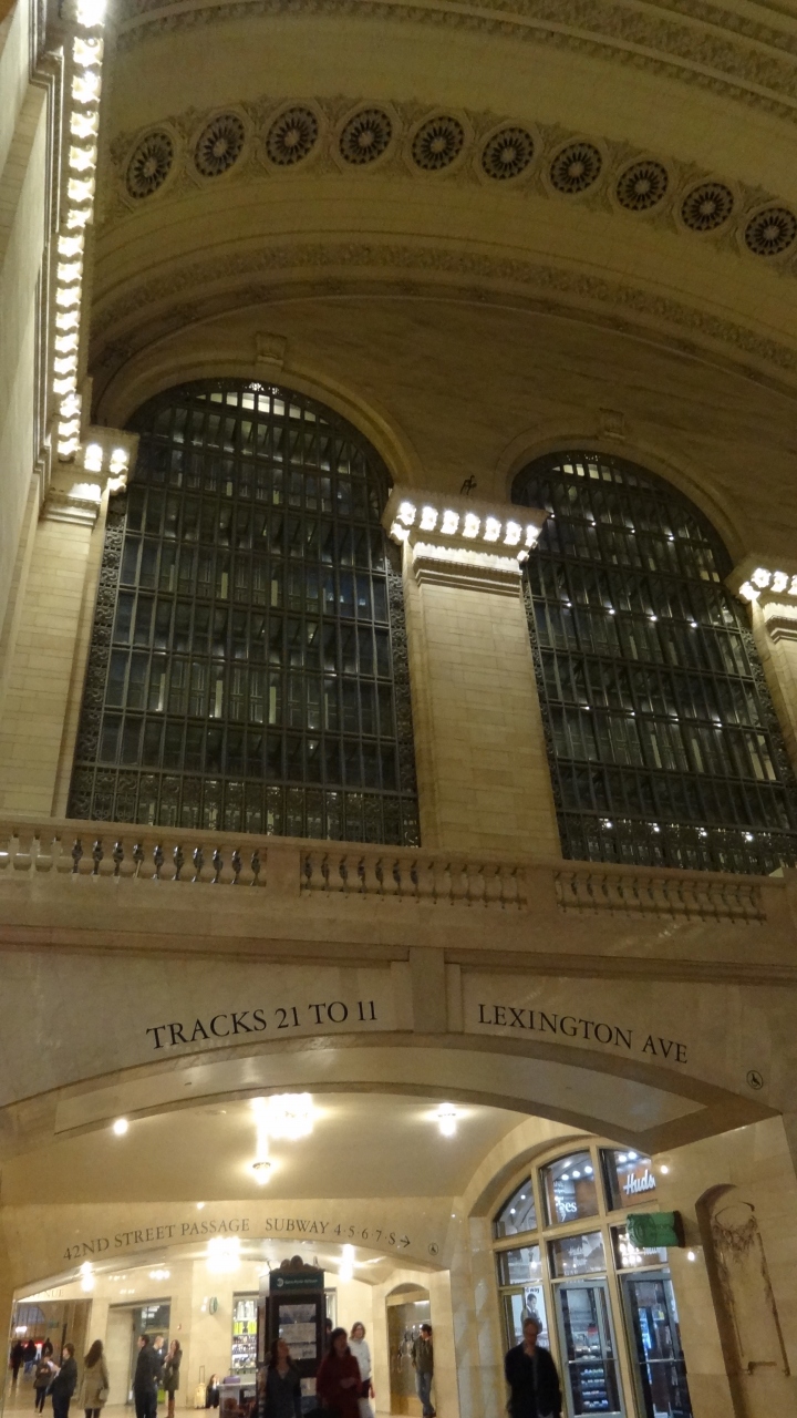 グランドセントラル駅はニューヨークのシンボル的な、また、建築的にも見ごたえのある駅です。天井にはまばゆい星座の景色、構内も大理石造りで重厚感があります。さすがニューヨークの中央駅という風格があります。特に列車に乗らなくてもぜひ見学に来ることをおすすめします。