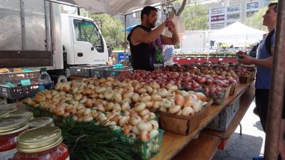 ユニオンスクエア・グリーンマーケットは、ユニオンスクエアで行われている、農作物のマーケットです。野菜などの農産物やジャム、ハーブティーやシードルなどがありました。すでに13時をまわっていたためか全体的に品薄でしたが、生産者と直接話せる貴重な機会で試食もいろいろとできました。