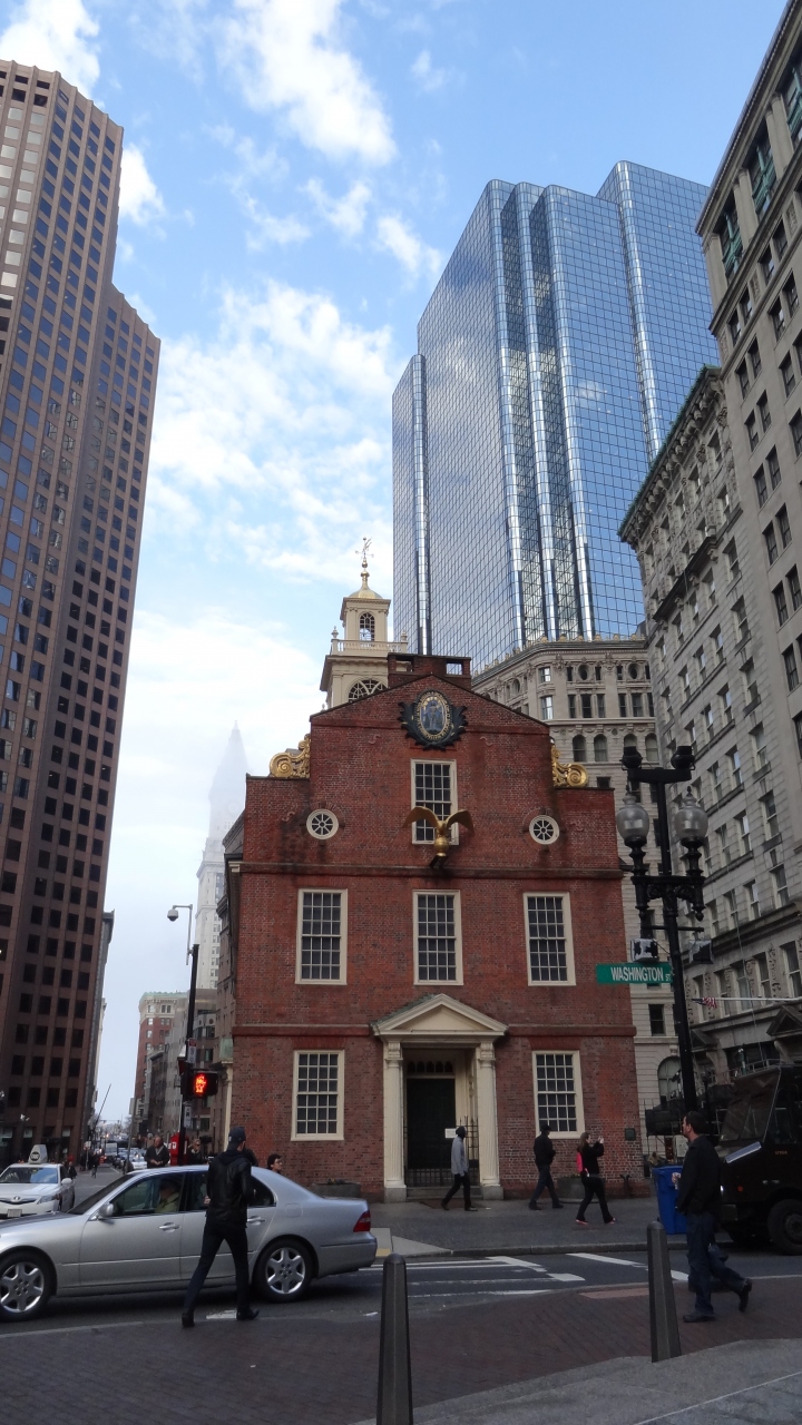 オールド・シティホールは、ボストンで人気の史跡を巡るウォーキングコース、フリーダムトレイルのコース内にあります。敷地内の庭にあるベンジャミンフランクリンの像が目立ちます。何でもこの像はボストン最古の銅製の立像であるとか。印刷所の息子として生まれたベンジャミンの青年時代から独立宣言を伝える様子なども足元に掘られています。緑の美しい庭でした。