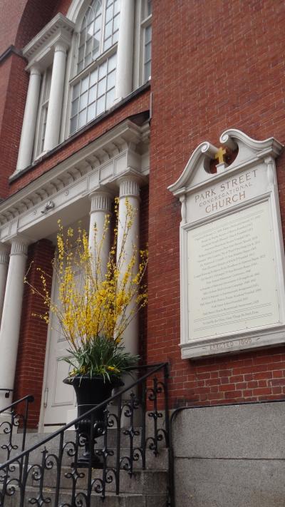 パークストリートチャーチはボストンコモンの近く、グラナリー墓地のそばにあります。ここでアメリカでは初めての奴隷制度反対の演説が行われたそうです。また、サミュエルアダムスがアメリカという歌を歌ったとか。その同じ歌かはわかりませんが、ちょうど子供たちの社会見学的グループが、先生の指揮のもとにこの教会の前で歌を歌っていました。