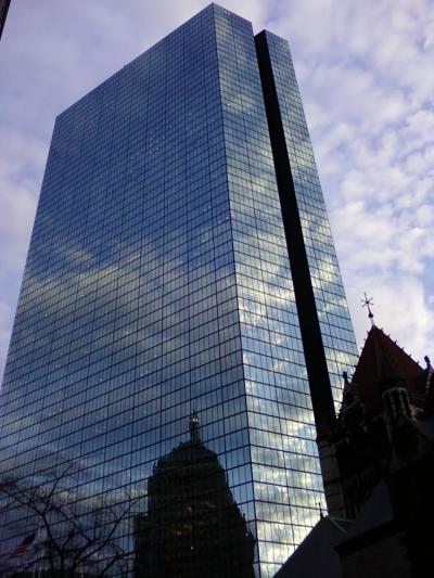 ジョン・ハンコック・タワーは、ボストンの中心街にある、コールプレースクエアのすぐ脇にあります。個人的にはボストンで最も美しいビルではないかと思っています。ロマネスク様式のトリニティ教会を超近代的なこのビルが映す姿は息を飲むものがあります。