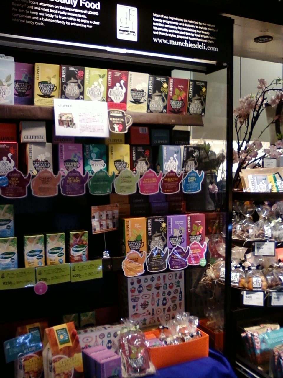 ここのマンチーズ・デリさんは、JR有楽町駅の目の前にある、マルイ・イトシアさんの地下一階、レストランフロアーにあります。無添加パーティーフードというコンセプトで、お惣菜あり、クッキーあり、紅茶やハーブティー、豆乳などが横長にずらりと並んだ店内です。魅力的なものはいろいろとあるのですが、いまひとつコンセプトがわかりづらく、また、店名も読みづらいです。店内も少し暗かったので、もう少しいろんなことが見やすかったらいいな、と思いました。