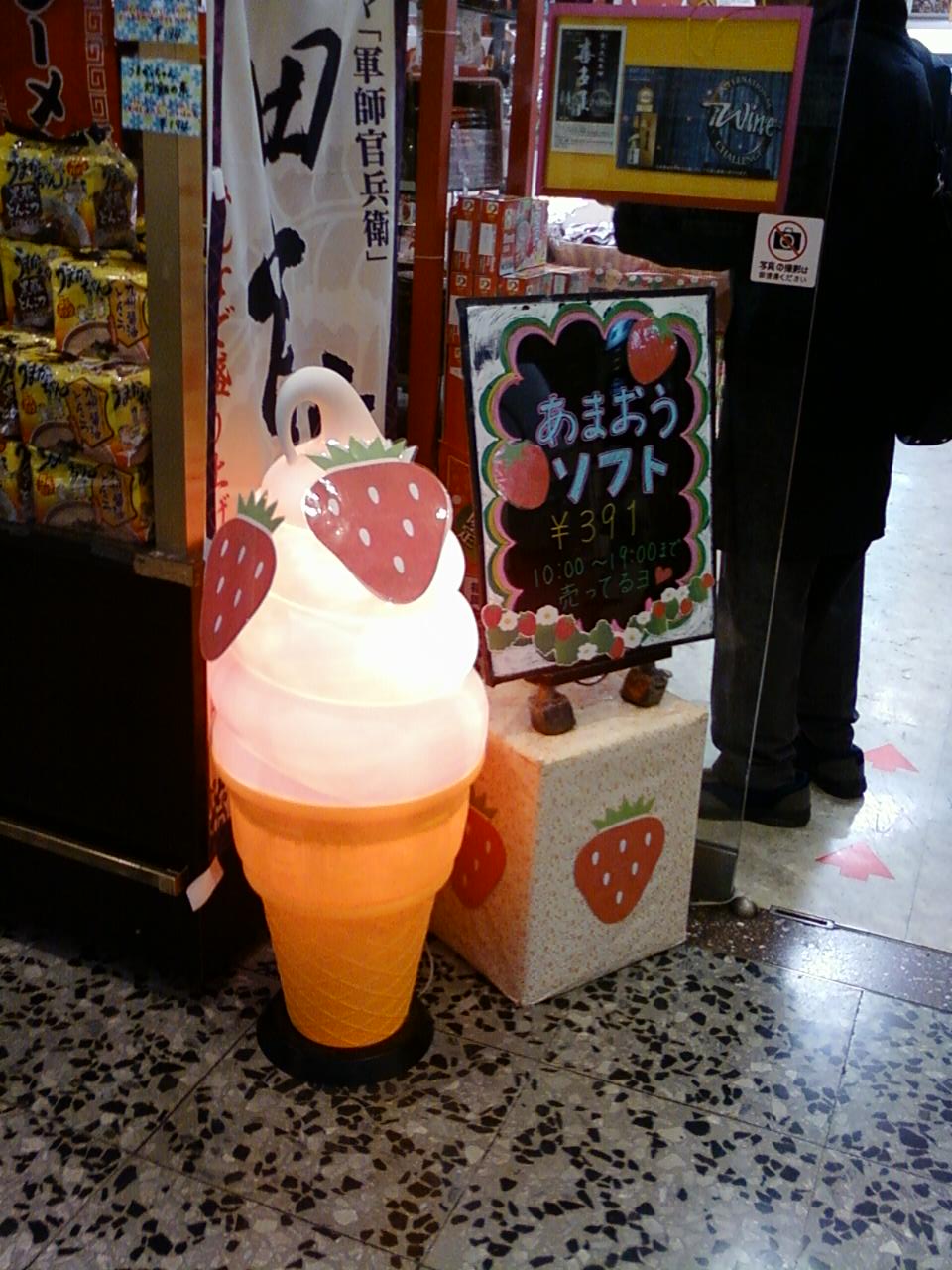 ここのザ・博多は、JR有楽町駅中央口の目の前にある、東京交通会館の地下一階にあります。博多の特産物を扱っているお店で、交通会館内のどのアンテナショップよりも小さいわりには一番派手な感じがしますね。店頭にはたくさんのインスタントラーメンであるハウス食品のうまかっちゃんがあって目立ちました。なかなか関東のお店では手に入りにくいラーメンですから、ありがたいですね。九州の人たちにはたまらないと思います。あまおうのソフトクリームを売っていて、美味しく頂きました。