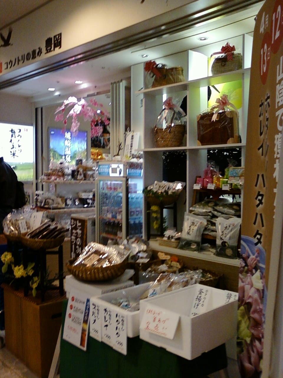 ここのコウノトリの恵みさんは、JR有楽町駅中央口の目の前にある、東京交通会館の地下一階にあります。兵庫県の豊岡市がコウノトリの里であることからこの名前がついたそうです。東京交通会館には他にも兵庫わくわく館というアンテナショップがあって、ここでも神戸の特産品などがありますから、兵庫関係のお店はここに2軒あることになります。NHKの大河ドラマの影響もあって、人気がありますね。こちらのお店は城崎、豊岡など、どちらかというと山陰方面中心です。出石のおそばや、香住のかに、城崎のちくわパンなど知らない発見が多くあり、楽しかったです。