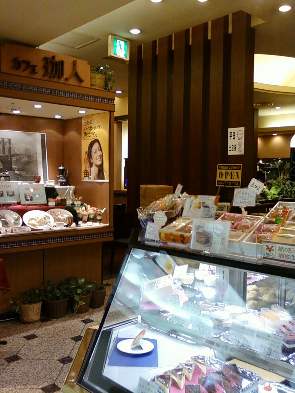 ここのカフェ珈人さんは、新宿駅西口に連結している、小田急エース南館の一角にあります。カフェあり、お持ち帰りのケーキやシュークリームあり、サンドイッチやホットケーキあり、そしてなんと、おにぎりとお味噌汁のある喫茶店です。なんだかホテルの朝食ラウンジに来ているような雰囲気です。お客さん目線でメニューを展開している、とてもフレキシブルなお店なんだと思いました。