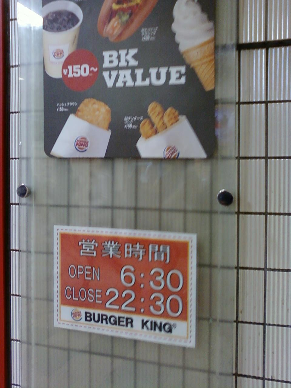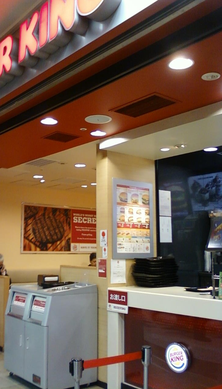 ここのバーガーキングさんは、新宿駅西口に連結している、京王モールさんの一角にあります。なんと朝6時30からあいているお店で、ここのフロアーのお店の中では1,2を争う早さでは?と思います。注文カウンターは通りに面していて寄りやすいのですが、店内はすぐそばをせわしく歩くたくさんの通行人のすぐそばなのでちょっとイートインは落ち着かないかな。
