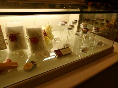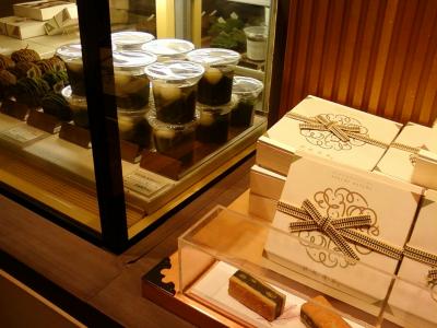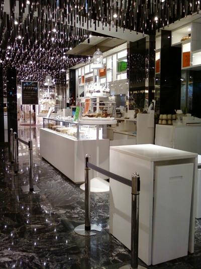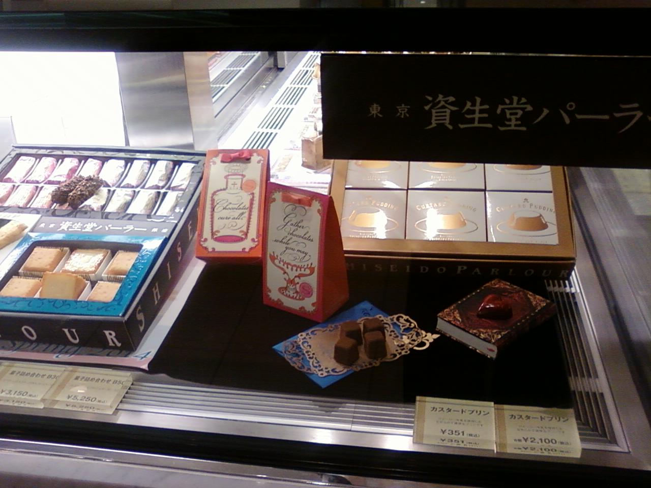 ここの資生堂パーラーさんは、新宿駅東口から4分くらい、また、東京メトロ新宿三丁目駅から直結している新宿伊勢丹の地下1階、フードコートの中にあります。化粧品のメーカーさんらしく、お菓子のパッケージの箱や色どりが香水や化粧品の入れ物みたいです。おなじみの比較的保存のきくチーズケーキ、チョコレートケーキ、プリンのほかに生ケーキもあるんですね。とてもドレッシーな雰囲気でした。