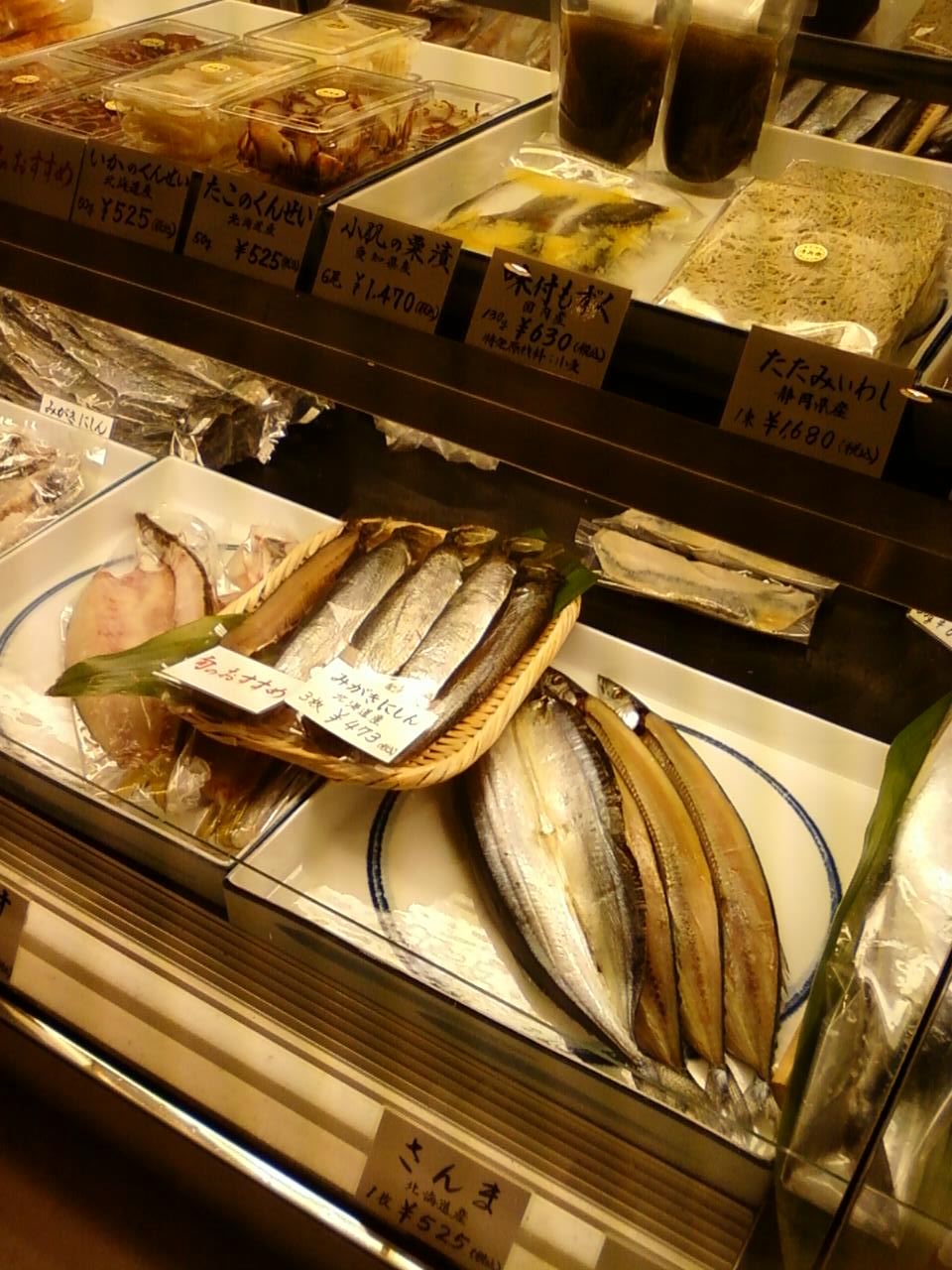 ここの魚谷清兵衛さんは、新宿駅東口から4分くらい、また、東京メトロ新宿三丁目駅から直結している新宿伊勢丹の地下1階、フードコートの中にあります。にしんの昆布巻き、たたみいわし、もずく、たこの燻製などなど、たくさんの主に加工された海の幸がところ狭しと並べられています。どの商品にも手書きで産地などの説明が書いてあって、親しみがもてますね。多少価格設定は高めですが、どれも丁寧な出来上がりで、安心していただいています。