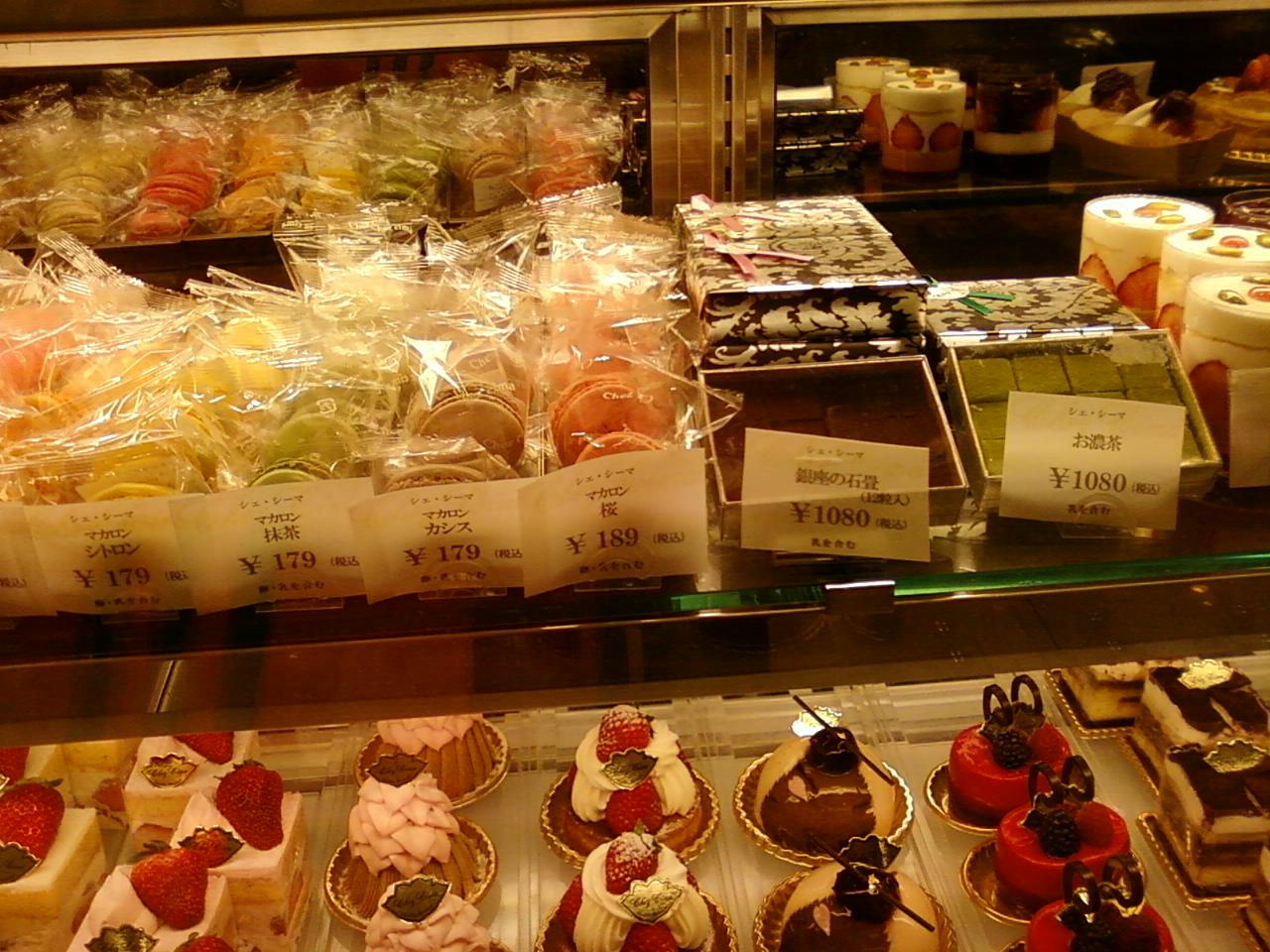 このシェ・シーマさんは、新宿駅東口から四分くらい、また、東京メトロ新宿三丁目駅からすぐのところにある、新宿伊勢丹の地下一階、食品フロアにあります。フランス菓子を学んでいる人なら知らない人はいないくらい日本のフランス菓子で有名なお店です。ケーキ、生チョコ、マカロン、シュークリームなどが並んでいます。ケーキは500円前後、マカロンは179~189円と高めですが、かなり技術の高さを感じる仕上がりです。桜やお茶を材料に使っているところも素敵ですね。