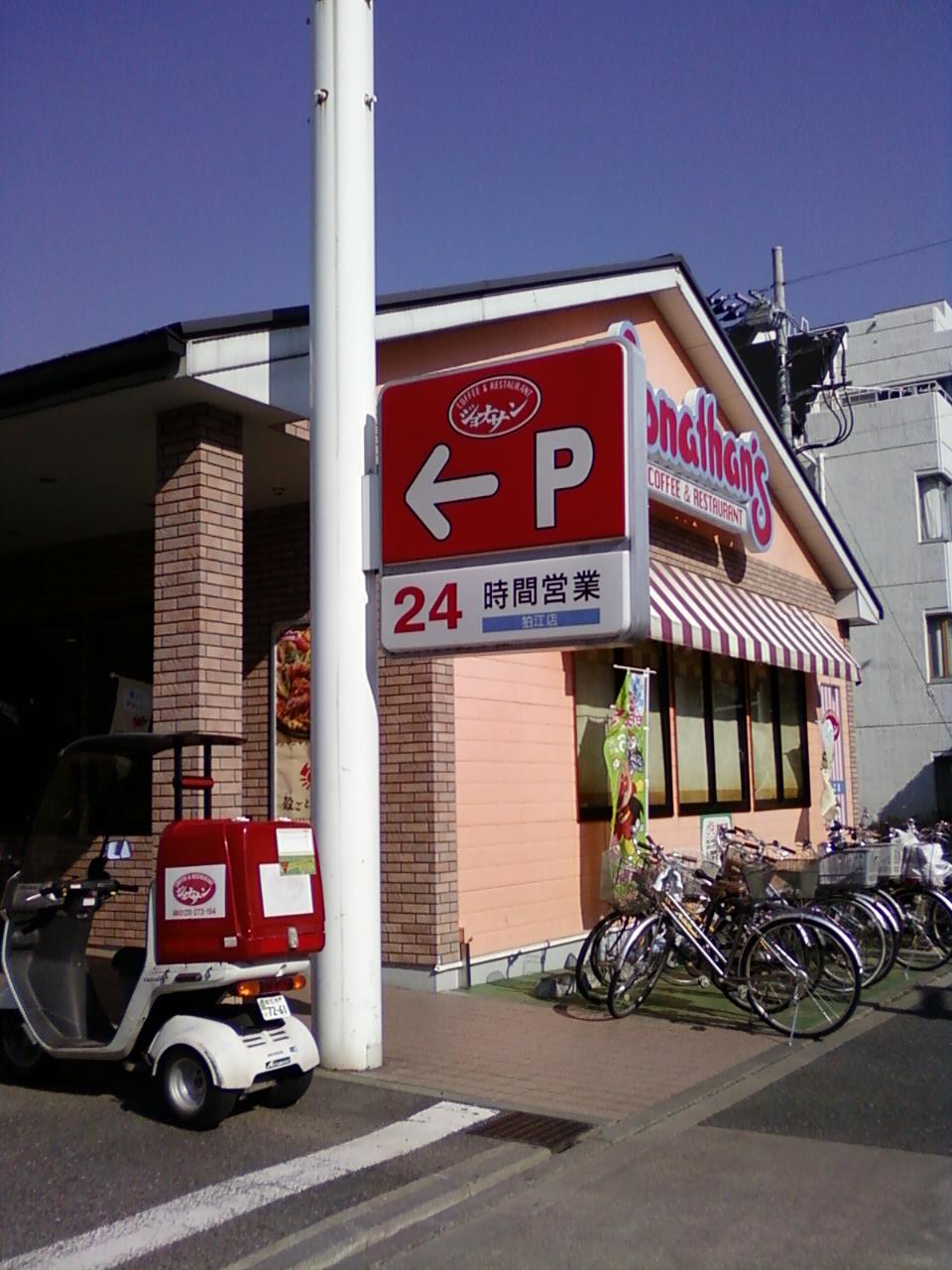 ここのジョナサンは、小田急線狛江駅から4分くらいのところにあります。狛江の駅近くにはファミレスはないし、ファストフードも小規模なものしかないので、特に家族連れや学生の団体にはありがたいですね。このあたりにはこのくらいの規模のレストランがないのでとても助かります。