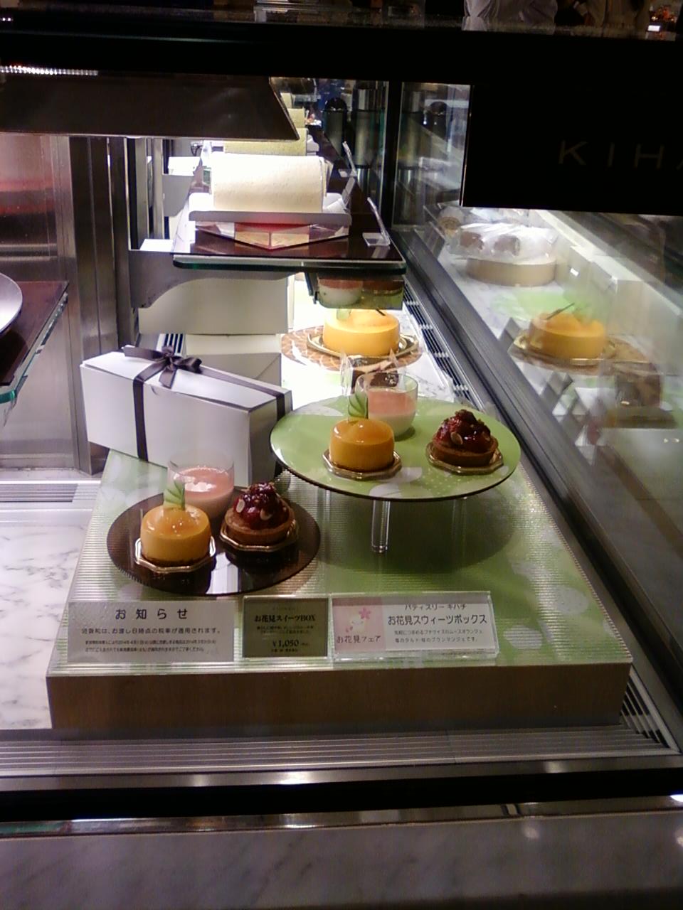 ここの鶴屋吉信さんは、新宿駅東口から4分くらい、また、東京メトロ新宿三丁目駅から直結している、新宿伊勢丹の地下1階、フードコートの中にあります。和菓子コーナーの中でも特にここは高級感のあるプレゼンテーションで、本領を発揮しています。ほかのデパ地下で見かけるもっとカジュアルな感じの鶴屋吉信さんとはぜんぜん格が違う感じがします。特にここの生菓子、わずかな季節の変わり目に合わせて異なっていき、すばらしいですね。