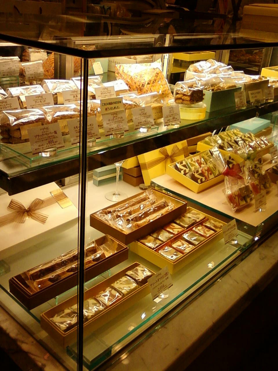 ここのホレンディッシェ・カカオシュトゥーべさんは、新宿駅東口から4分くらい、また、東京メトロ新宿三丁目駅から直結している新宿伊勢丹の地下1階フードコートの中にあります。その中でも隣をジャンポール・エヴァンやピエール・エルメなど超高級、人気フランスパティスリーに囲まれた豪華なスペース。このお店のセレブさがわかります。高級なバウムクーヘンの専門店です。売れてしまったのか最初からないのか、お店の中は品薄でしたが、たくさんのお客さんが調べてきているようでした。バウムクーヘンのおいしさは、かなり確かなものです。