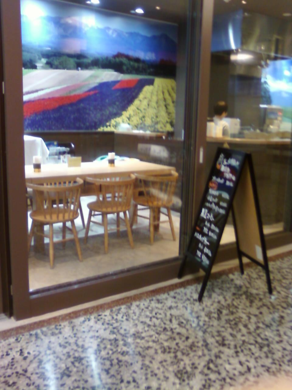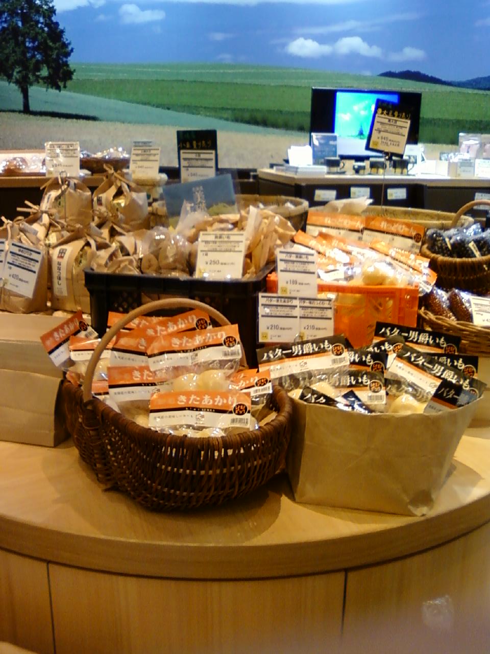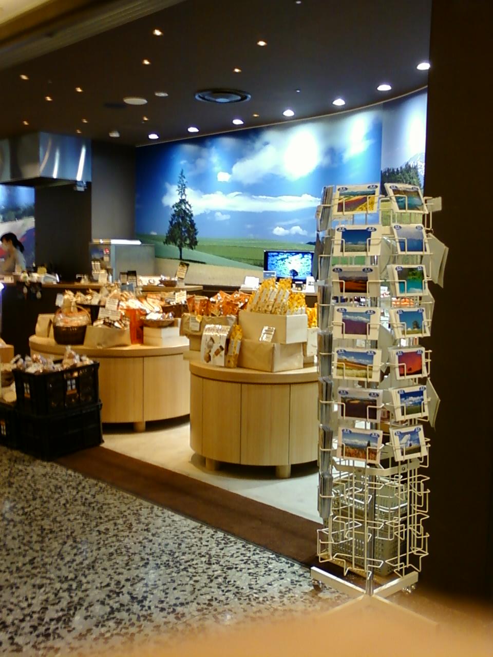 ここの丘のまち美瑛は、JR有楽町駅中央口のすぐ目の前にある、東京交通会館の地下一階にあります。北海道の美瑛を目をひく写真パネルで表現した美瑛のアンテナショップです。とにかくすがすがしい丘と空、花畑の広がる美しい店内に広いテーブルがあり、飲食ができるようになっています。丘どら焼という、とてもふわふわしたかぼちゃの入ったどら焼を頂きました。
