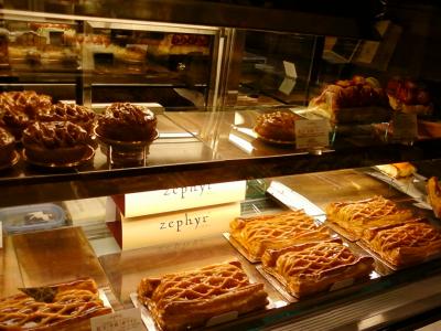 ここのゼフィールさんは、新宿駅東口から4分くらい、また、東京メトロ新宿三丁目駅から直結している新宿伊勢丹の地下1階、フードコートの中にあります。東京風月堂さんの伊勢丹限定ブランドで、ここの和三盆糖を使ったアップルパイがとても有名で、りんごとお砂糖の旨味がうまく融合していて、人気のほどは納得です。日本の果物ばかりを取り扱っているそうです。ゼフィールとは西風、そよ風の意味なんですね。それで風月堂とのつながりがわかりました。