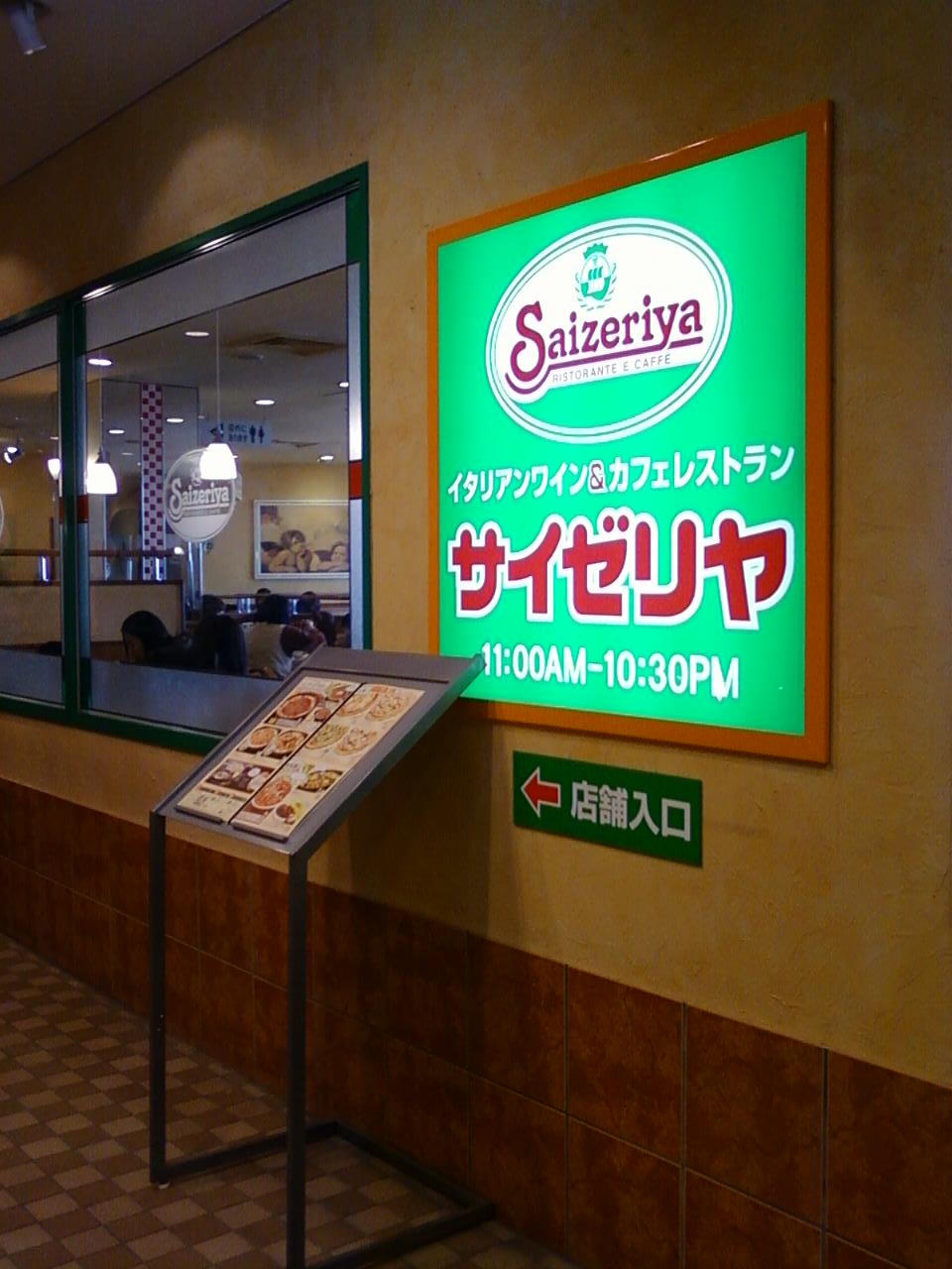 ここのサイゼリアさんは、横浜市営地下鉄のセンター南駅から二分くらいのところにある、港北東急ショッピングセンターの五階、レストランフロアにあります。特にこのフロアは祝祭日や学校の春夏冬休みの期間、家族連れでにぎわうのですが、まさにここはその家族にうってつけのようなお店ですね。広くて安くて、大家族には助かります。