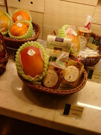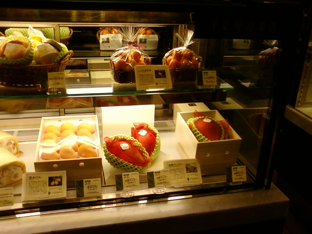 ここの千疋屋さんは、新宿駅東口から4分、東京メトロ新宿三丁目駅から直結している、新宿伊勢丹デパートの地下一階、食品フロアにあります。新宿には何軒も千疋屋さんのお店があるのですが、ここはどちらかというとギフトセットやケーキを中心に展開しているようでした。ちょうどバレンタインとホワイトデーの間でしたので、それを意識した果物ギフトもありました。いつも高級感満載です。