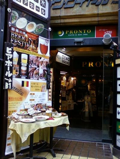 ここのプロントさんは、JR御茶ノ水駅からも東京メトロ新御茶ノ水駅からも1分くらいのところにあります。サンロイヤルビルというお茶の水の駅前では非常に有名な洋館みたいな外見の、それでも中には主に和風の居酒屋さんがたくさん入っているビルの一階にあります。お店の入り口が道路に面していないのと、ビル自体が夜の営業のイメージが大きいので昼間は通り過ぎて行く人が多いみたいです。ここのプロント、しっかりお昼も開いてますよ。