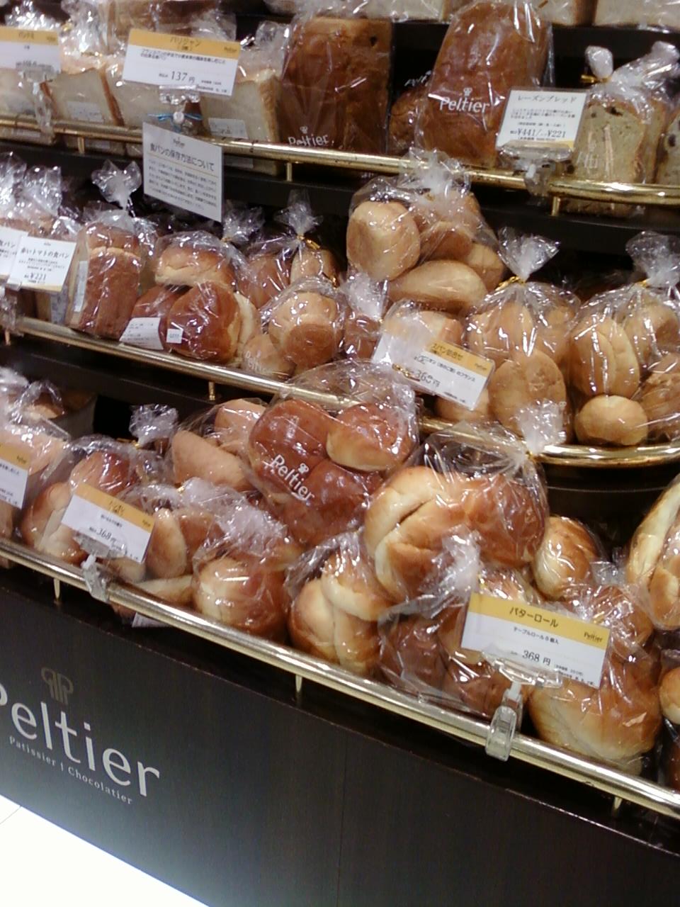 ここのぺルティエさんは、新宿駅西口に連結している、京王百貨店の中二階にあります。食品フロアの一角です。これまではフランス系のお菓子しか知らなかったのですが、ここには生ケーキやパンもたくさんあるんですね。パンはスペースの関係か袋に入れられたものが多いですが、たくさんの種類がうず高く展示してあります。