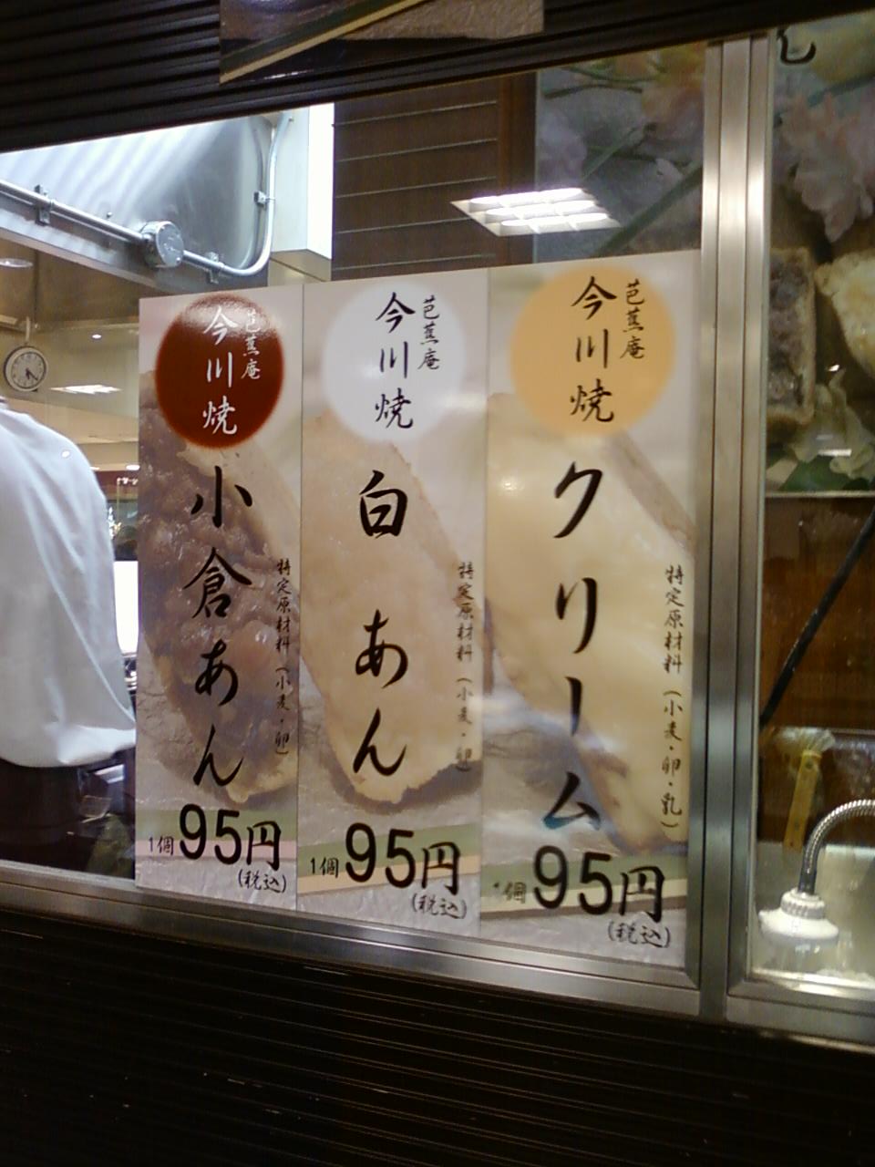 ここの芭蕉庵さんは、新宿駅西口に連結している京王百貨店の中二階にあります。食品フロアの一角です。今川焼のお店で、種類は少ないですが実演販売のお店です。ガラス越しに今川焼を焼いていて、なんとも言えない良い匂いがただよってきます。場所的には結構広いのですが、種類が少ないのが残念。おいしいのですが、もう少しお店に明るさがほしいな、と思いました。