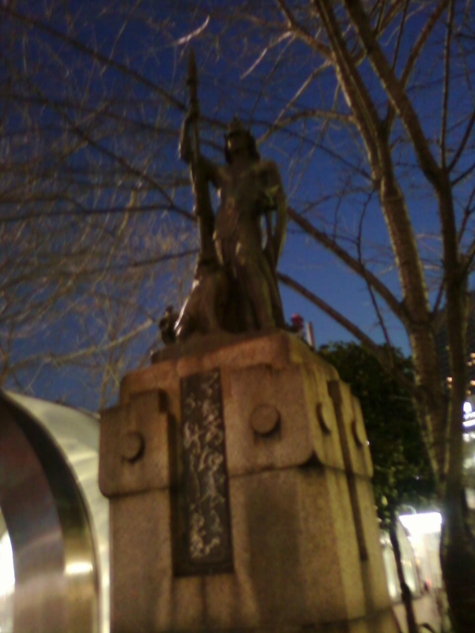 この銅像「燈臺」は、彫刻家の北村西望が昭和6年に制作した作品だそうです。有楽町の数寄屋橋の交番裏辺りにあります。北村西望は、長崎市の平和祈念像も制作した有名な彫刻家だそうです。兜を着た男性が獅子をともなっていて、何事にも揺るがない力強さを感じますね。関東大震災10周年を記念してここにおかれたそうです。これを見るたびに災難に立ち向かう人間の姿を思い出しますね。