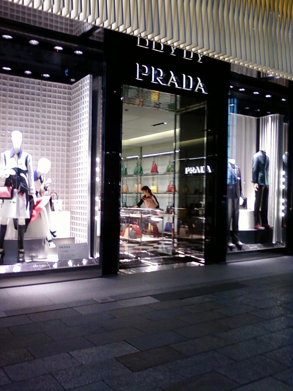 ここのプラダは、東京メトロ銀座駅、および東銀座駅から二分もしないところにあります。英会話学校なども入っているビルの一階にあります。ネームバリューとは裏腹に、カジュアルな入りやすい雰囲気が良いですね。店舗自体はゴールド調の外観でかなりゴージャスな感じです。