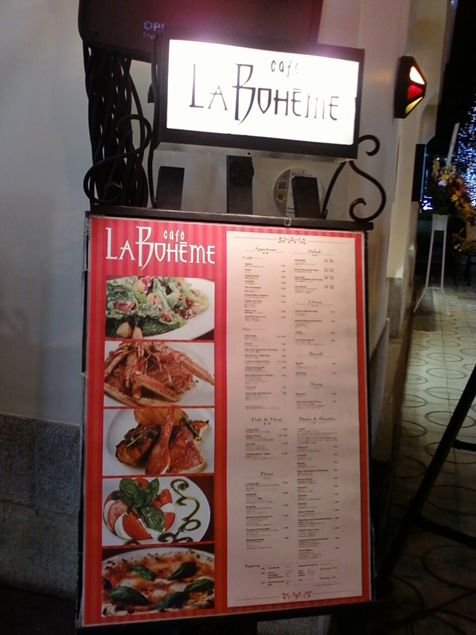 ここのカフェ・ラ・ボエムさんは、東京メトロ銀座一丁目駅、そして京橋駅からそれぞれ1~2分くらいのところにあります。非常に便利です。確か銀座六丁目あたりでも見かけたことがありますが、いかにも銀座のレストランバーという感じで大好きです。ボエムというくらいですから、スタイルとしては東欧なんでしょうか?建築、ロゴ、インテリア、すべてにおいて大人の夜のヨーロッパな感じがいいですね。