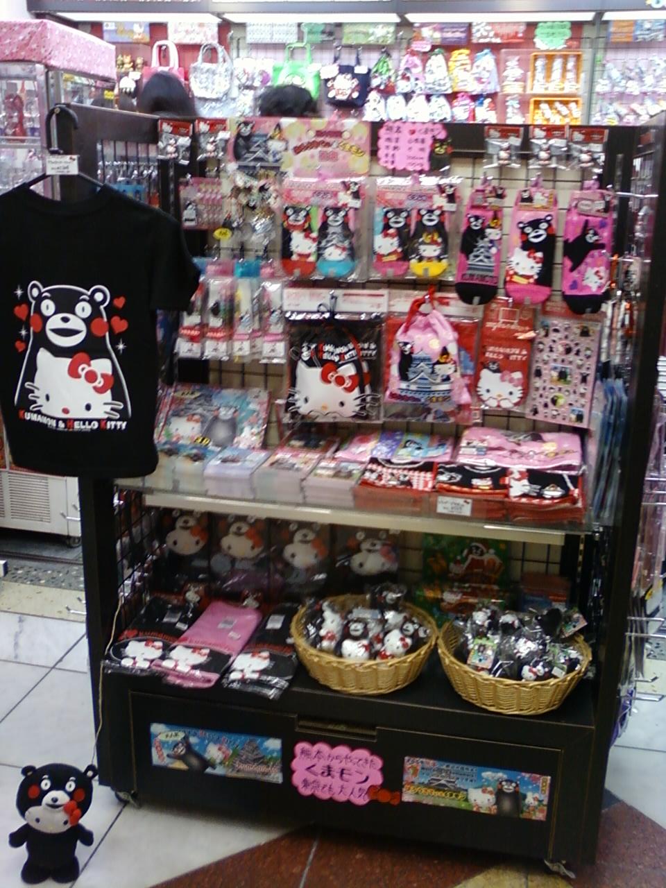 ここのさんりお屋さんは、羽田空港国内線第一ターミナルの地下一階にあります。日本全国の観光地で展開しているさんりお屋さんですが、基本はご当地の名産品などとキティちゃんのキャラクターなどがジョイントしているパターンが多いですよね。さて羽田空港はどんかな?と入ってみると結構くまもんのグッズがたくさんありました。羽田空港は飛行機に乗らなくても買い物に来る人も多いとか。ちょっとした旅行気分になれて素敵です。