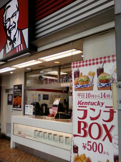 ここのケンタッキー・フライドチキンさんは、新宿駅西口を出て、青梅通りに向かう途中の道にあります。朝の7時から23時まで開いています。ちょうど商店街のアーケードの下のようなところにお店が何軒も並んでいて、ここのカウンターが道を歩いているといきなりあります。ドアはありません。路面には席はなく、全席禁煙でテーブルなどは二階からです。歩いているときにささっとカウンターに寄れるのがいいですね。