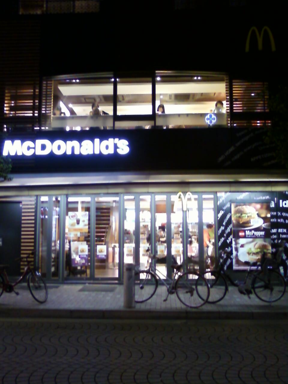 ここのマクドナルドは、東京メトロ麻布十番駅の4番出口から1分くらいのところにあります。麻布十番の商店街沿いです。この通りは他の店にもあるチェーン店のカフェやファストフード店も特別に大人な外観の様子ですが、ここも例外にもれずとてもスタイリッシュなマクドナルドです。こうして見ると、いつもの赤と黄色がなくても十分マクドナルドということがわかります。他にハンバーガーの店がほとんど近くにないので、貴重です。