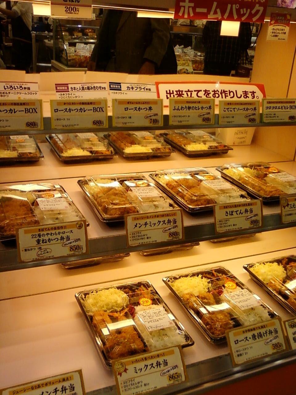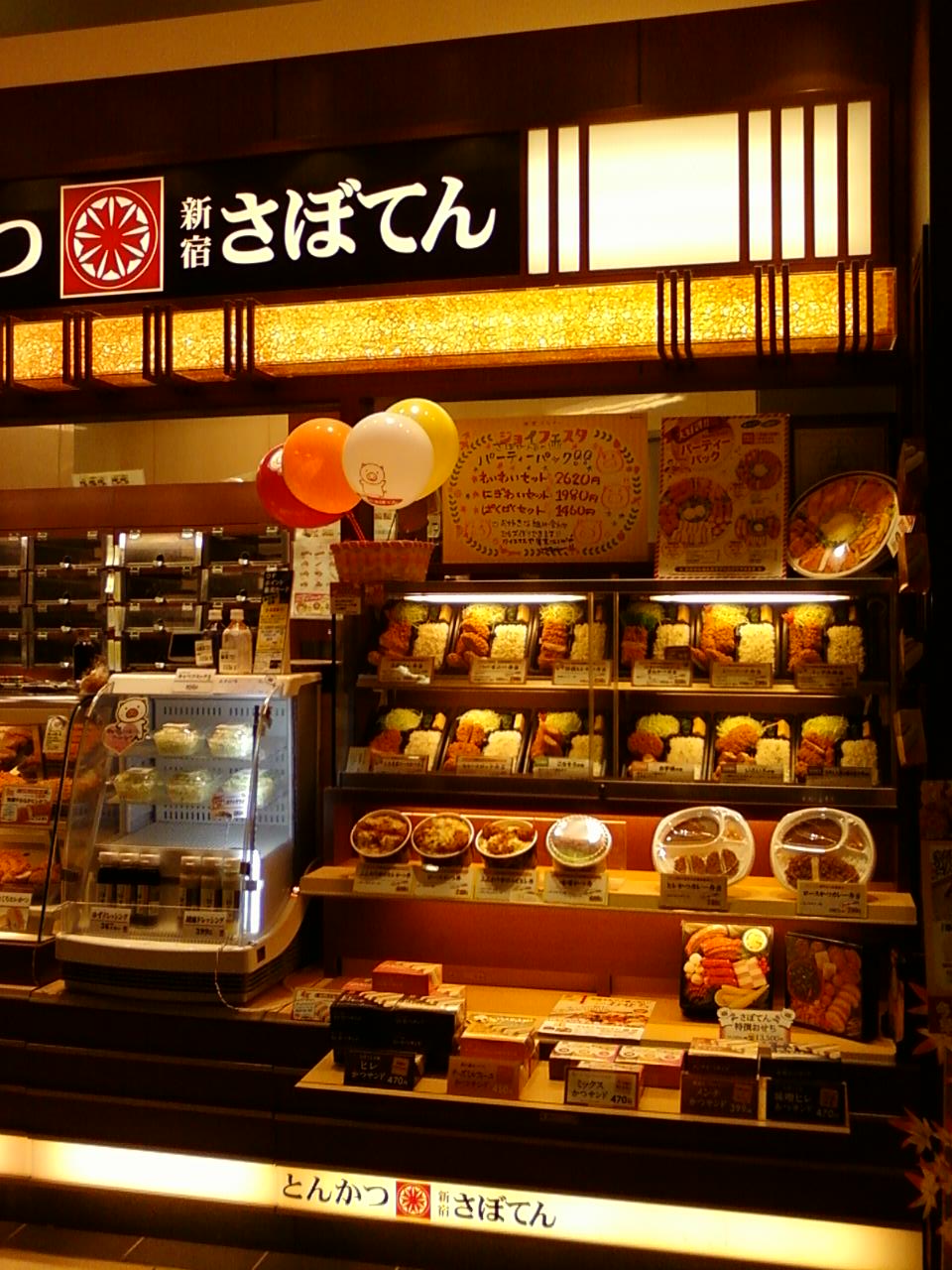 ここの新宿さぼてんさんは、JR川崎駅に連結しているラゾーナ川崎の一階、グラン・フードコーナーの一角にあります。 このフロアにはほかにも揚げ物が手に入る店舗はいろいろとあるのですが、さぼてんさんの特に豚肉の柔らかさや、フライ衣のさくさく感や、やさしい味わいのファンがここを選んで来ているように思います。今は特にカキフライが絶品です。