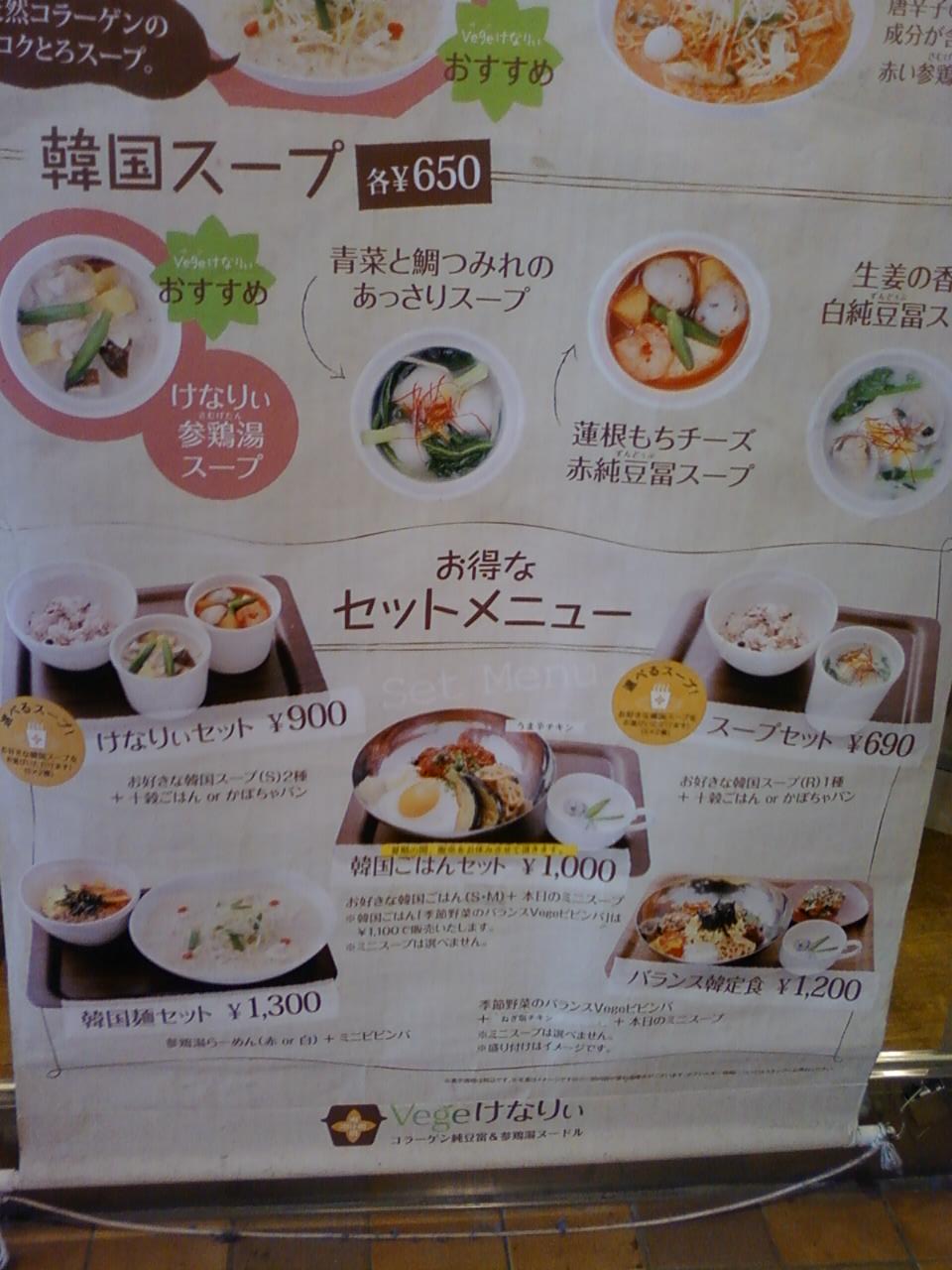 ここの韓国ごはんとスープのお店ベジけなりぃさんは、JR品川駅の構内にあるエキュート、サウスコートの一角にあります。どのメニューも野菜をふんだんに使っていて、美容と健康の食事のヒントがたくさん隠されている感じです。味付けもさっぱりしたものが多く、体に良さそうです。いつも女性客を多くみかけます。