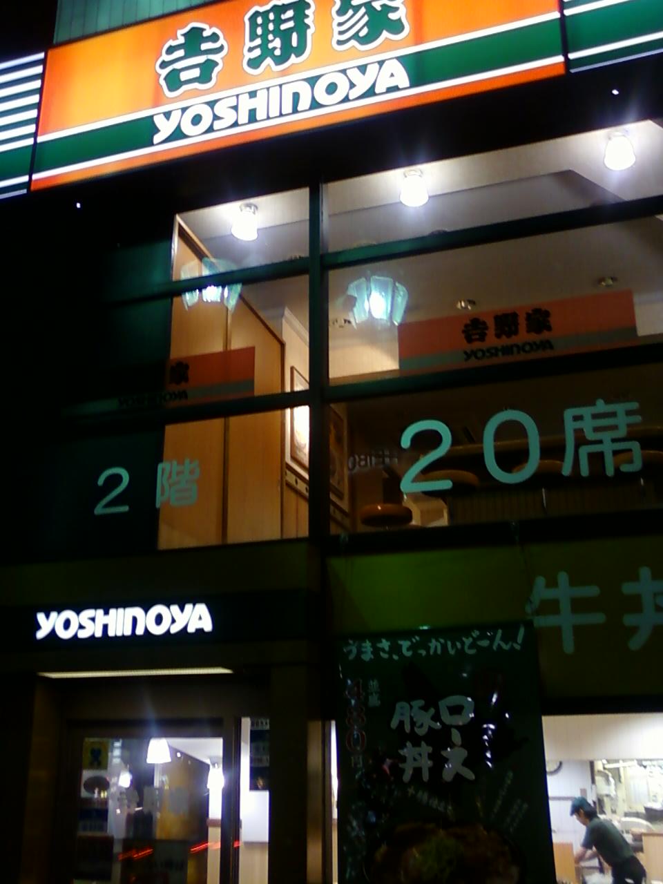 ここの吉野家さんは、六本木の交差点すぐそばにある芋洗坂を下って行って、六本木郵便局の向かいにあります。この通りは大都会の中心にもかかわらず夜になると結構閑散としています。24時間営業の二階建てのお店です。なぜかここに吉野家さんがあるとほっとするのは、なんとなく庶民の感じ、昔の六本木を思わせるムードがあるからでしょうか?ぜひここにずっとあってほしいものです。
