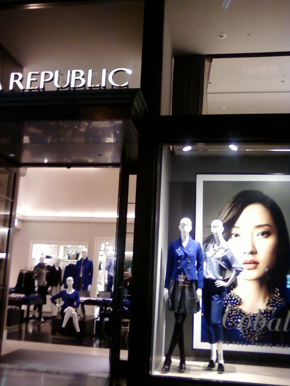 ここのバナナリパブリックさんは、都営大江戸線と東京メトロ六本木駅に直結しているノースタワーの1、2階にあります。かなり大きな店舗で、さえぎるものもなくとても目立ちます。ここのファッションの特徴は柄物というより、デザイン性で非常に広い年齢層をひきつけていると思います。シンプルなのに品があって、流行に関係なく長く着られる服ですね。