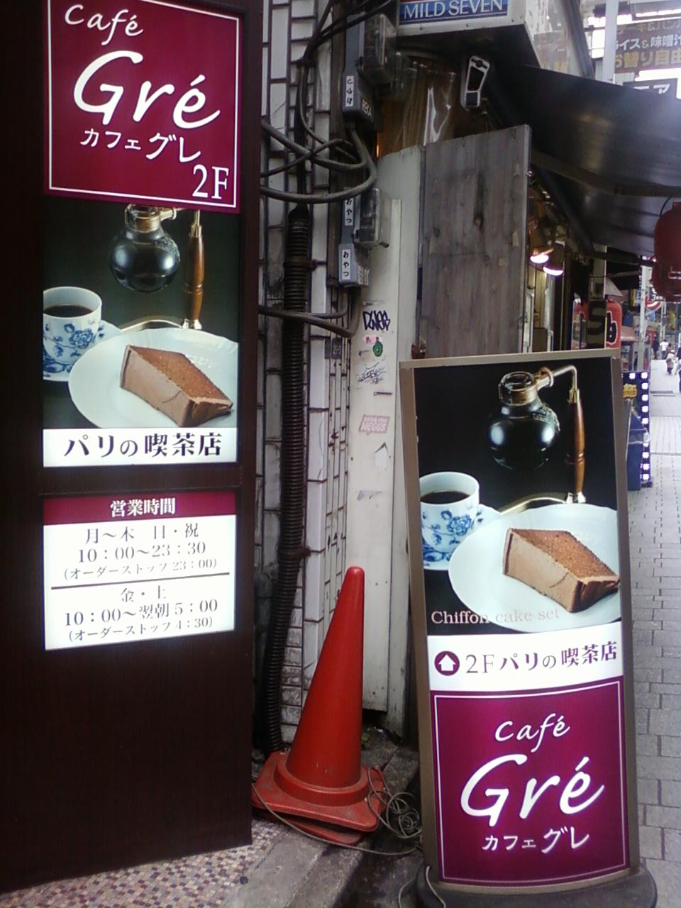 ここのカフェグレさんは、JR新宿駅の東口、三井銀行のそばの道を通り抜けて、靖国通りに出るその道沿いにあります。ここの道にモア三番街という名前がついていることを今日はじめて知りました。パリのカフェという写真がいっぱい飾ってあって、ちょっとこの通りのほかのお店とは違うムード。二階まで階段を上らなければならないのでちょっと大変ですが、そのぶん静かです。