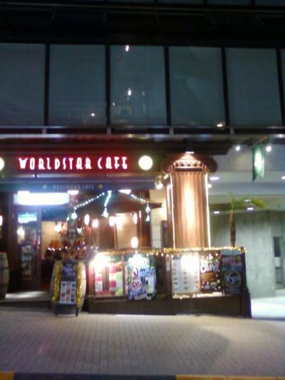 ここのワールドスターカフェは、六本木の交差点すぐそばにある、芋洗坂の通り沿いにあります。この通りは大都会の中心にもかかわらず夜になると結構閑散としています。18時から21時までがハッピーアワーで、全てのドリンク500円になっていました。店内でミスタービーンズの番組を流していたのが面白かったです。