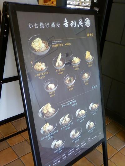 ここの吉利庵さんは、JR品川駅の構内にあるエキュート、サウスコートの一角にあります。かき揚げそばの専門店です。初めて見ました。天ぷらそばと書かないのはやはり、″かき揚げ″にこだわっているからですかね?さすがにめんやだしと揚げ物のバランスが上手でした。