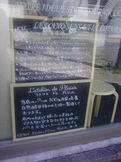 ここのラトリエ・ドゥ・プレジールさんは、小田急線祖師谷大蔵駅から4~5分くらいのところにあります。土曜日の12時30分くらいに行きました。12時から開いているのですが、あっというまにバケットは完売したようです。店内もひっきりなりしに次から次へとお客さんが並んで、すごい人気ですね。お店のレジの人(たった1人)に頼んでパンを注文していくのですが、いつまでもレジの切れ間がないといった感じです。パンはどれも高めでひとつ安くても300円以上はし、あっという間に1500円、2000円となってしまうのですが、その価値は充分にありますね。このお店の近くに住んでいる人は幸せですよ。