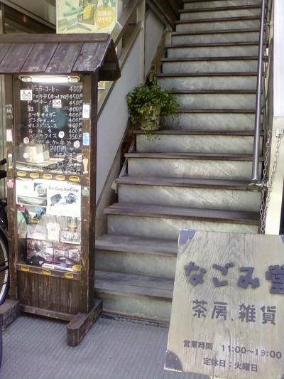ここのなごみ堂さんは、小田急線祖師谷大蔵駅の北口に続く祖師谷商店街の通り沿いにあります。たぶん、とんねるずブームの時はかなりの人が訪れたのでは?と思います。1階にはしっかりと自転車屋さん(木梨サイクル店)が営業されています。なごみ堂自体はこの自転車屋さんの脇の階段を上って行った二階にあります。茶房・雑貨というのが面白ですよね。のどかなカフェでした。