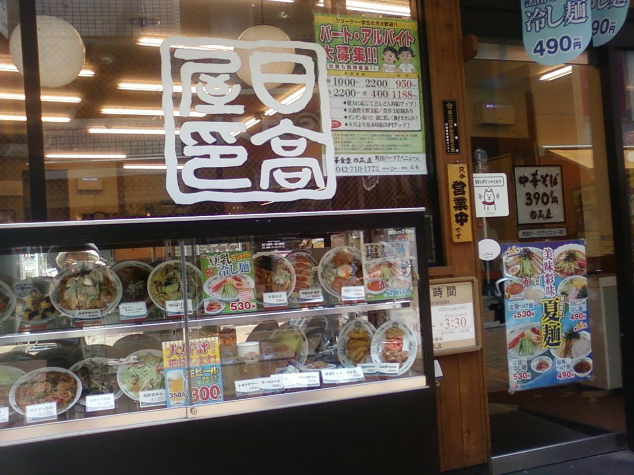 ここの日高屋さんは、小田急線町田駅およびJR町田駅から4分くらいのところにあります。このあたりは同じようなチェーンの格安定食屋さんが集中していて、ここも同じように、300円や400円台などかなり安い価格でラーメンやチャーハンや冷やし中華、餃子などを食べることができます。塩麹つけ麺や、豆乳をつかった冷やし麺おすすめです。今は健康に気をつかったメニューが結構人気かもしれませんね。