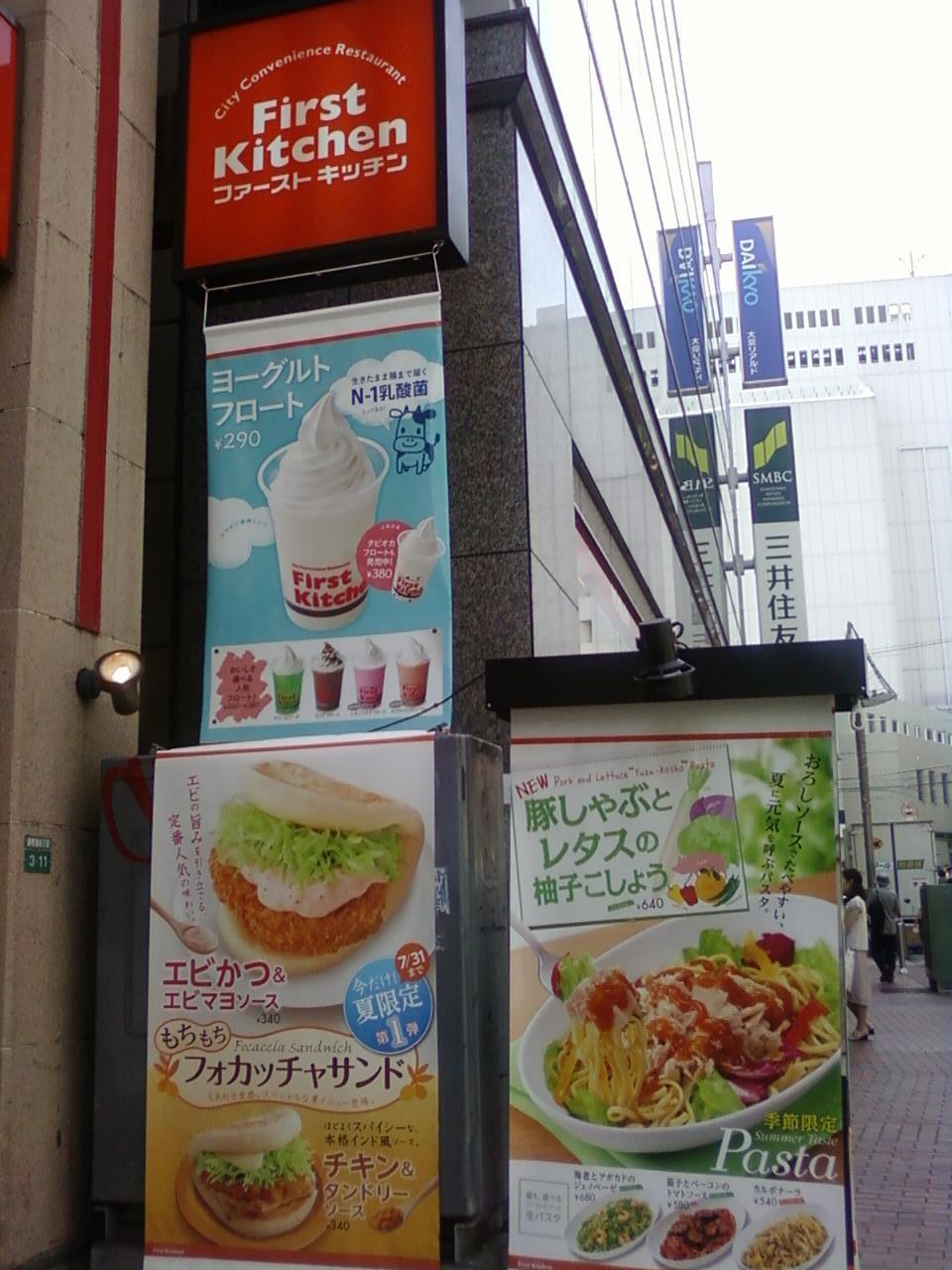 ここのファーストキッチンさんは、小田急線町田駅の西口から2分くらいのところにあります。店内は広くすっきりしていて、開放的。入りやすいです。ファーストキッチンにはパスタもいろいろとあって、豚しゃぶとレタスのゆずこしょうのパスタ(640円)、エビとアボカドのジェノベーゼ(680円)などもおすすめです。今は暑さのせいかフロートが人気で、流行のタピオカが入ったものもありますね。