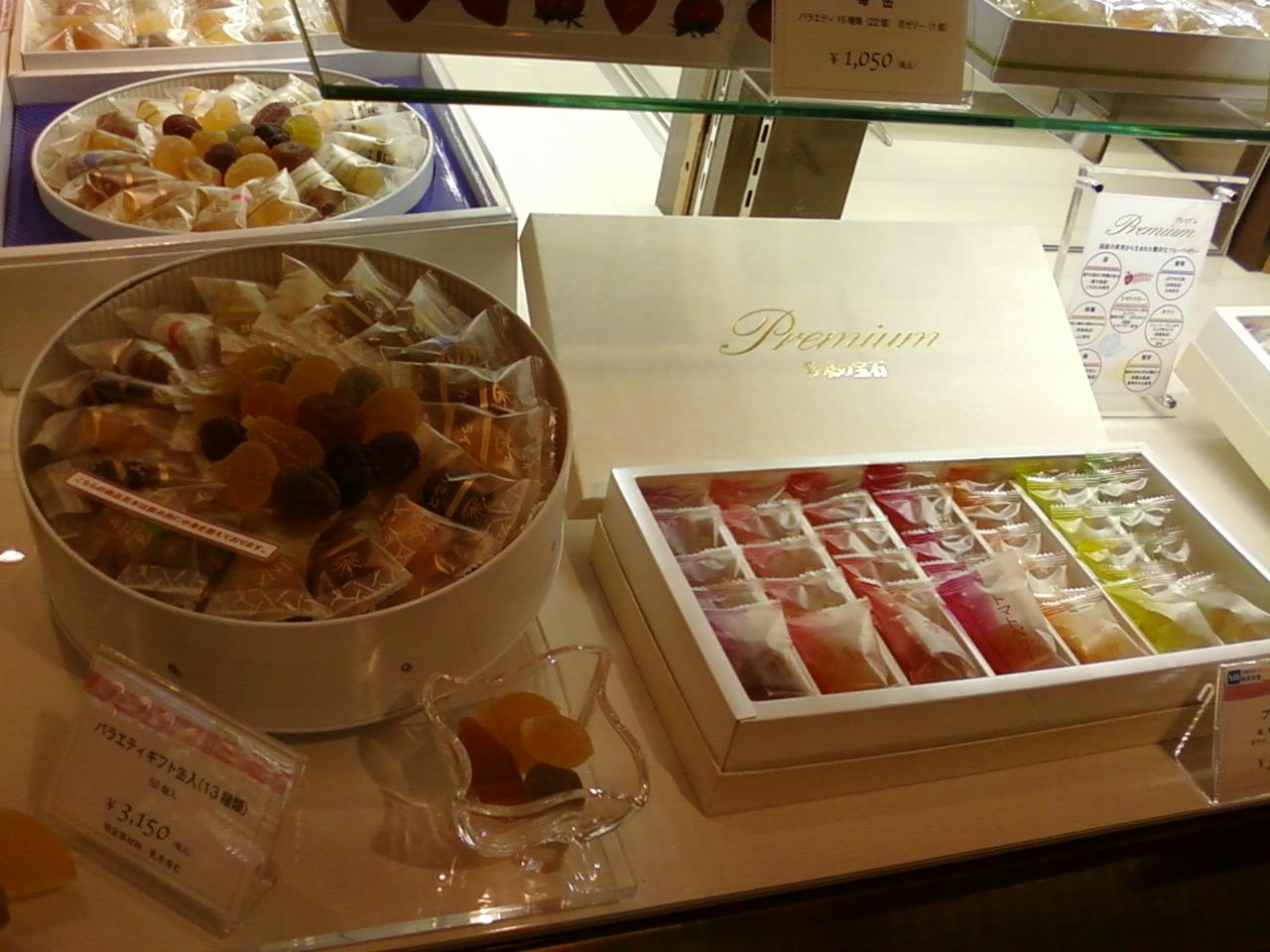 ここの彩果の宝石さんは、 東京メトロ銀座駅からすぐのところにある、銀座三越の地下二階、ギンザフードガーデンの一角にあります。さまざまな果物の果汁をカラフルなキャンディサイズのゼリーにして、それをまたそれぞれ素敵な形でプレゼンしています。表面にはうっすらと砂糖がまぶしてあります。夏は冷やしておしゃれなデザートになりますね。まさに食べる宝石です。