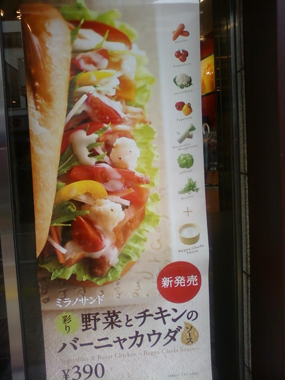 ここのドトールさんは、東急溝の口駅から2分くらいのところにあるポレポレ通り、東急口から数秒のところにあります。一階は33席、2階は52席もある比較的大きめの店舗で、広くて明るくて、落ち着きます。店内にさわやか感があるので女性に人気です。新発売の野菜とチキンのバーニャカウダーソース(390円)は、たくさんの野菜が一度に摂れて、健康的です。これからも新製品がたのしみですね。
