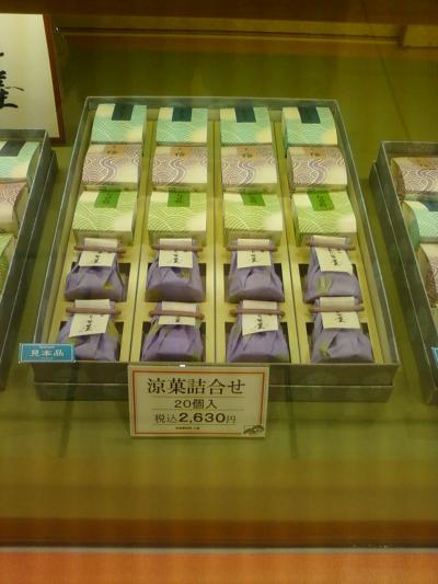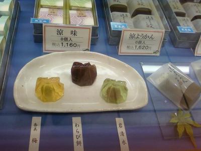 ここの紀の国屋さんは、JR武蔵溝の口駅から一分くらいのところにある、ノクティー2、丸井ファミリー館の一階にあります。たくさんの和菓子屋さんがそろうこのフロアーで、この店舗の高級感は一、二を争うかもしれません。夏らしく、水ようかん、ワラビ餅などが出ていました。コスパは高めですが、味とセンスで勝負ですね。それぞれの和菓子のパッケージ、見ているだけで涼みます。