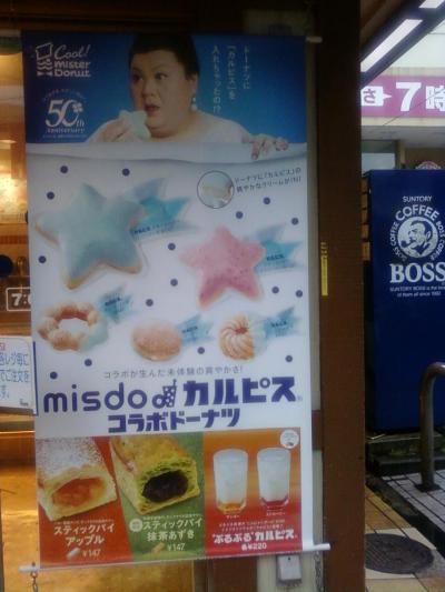 ここのミスタードーナツは、小田急小田原線の海老名駅東口から4分くらいのところにある、スーパーイオンの目の前にあります。相当前からあるミスタードーナツで、店内の椅子なんかは年月を感じさせます。今はカルピスとコラボレーションしたらしく、星形のキラキラしたピンクや水色の夢あるデザインのドーナツが目を惹きます。カフェみたいなカウンター席のある珍しいミスドです。朝の7時間から11時まで開いてます。