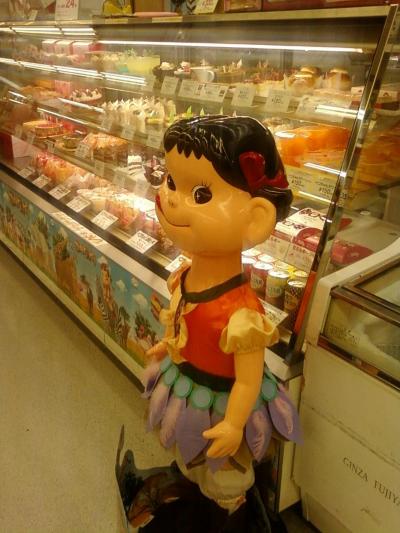 ここの不二家さんは、東急溝の口駅に連結している東急ストアの一階にあります。お店のメインの入り口からは少しわかりづらい位置にあるので気の毒です。不二家さんにはしばらく行ってなかったので知らなかったのですが『ペコちゃんのほっぺ』というクリームが中に入ったケーキや、ミルキー、ネクターのケーキなどがあるんですね。子供のころを思い出しながらついノスタルジーに浸ってしまうのがこのお店です。ペコちゃん、いつまでも元気に店頭でみかけたいものです。