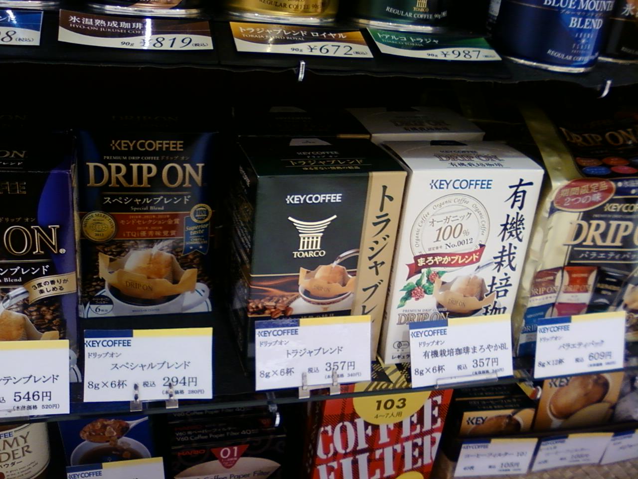 ここのキーコーヒーさんは京王線調布駅から一分くらいのところにある、パルコの地下、フードマーケットにあります。和菓子や洋菓子さんが多く立ち並ぶ中で、ここは唯一コーヒー豆の専門店です。コーヒーの豆を量り売りしていますし、その他にもドリップ式のコーヒーなどもお手軽な価格であります。コロンビアのコーヒーを試飲としてサービスしてくださいました。